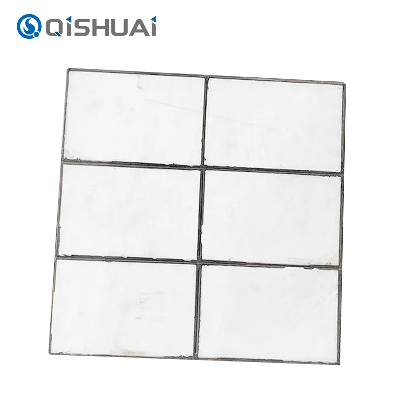 Shandong Qishuai Wear-Resistant Equipment Co., Ltd. မှ ရော်ဘာထည့်သွင်းထားသော ကြွေပြားအပြားပြားသည် သီးခြားအလွှာနှစ်ခုကို ပေါင်းစပ်ထားသည့် ဒီဇိုင်းကို ပြသထားသည်။ ဤဒီဇိုင်းသည် ကြွေပြားများကို ရော်ဘာအလွှာဖြင့် ပေါင်းစပ်ထားသည်။ မတူညီသောအလွှာများသည် မတူညီသောလုပ်ဆောင်ချက်များကို ပေးစွမ်းသော်လည်း ပေါင်းစပ်လုပ်ဆောင်သည်။ ဤပေါင်းစပ်မှုသည် ပစ္စည်းကိရိယာများအတွက် ဝတ်ဆင်ခြင်းမှ ကာကွယ်ပေးသည်။